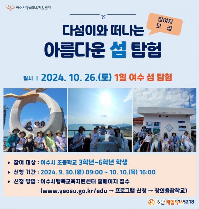 ¶ÇÇÑ ¼¶À» µû¶ó °ÉÀ¸¸ç ¾²·¹±â Áݱâ(Ç÷αë) Ȱµ¿À» ÅëÇØ ÇØ¾ç ȯ°æº¸ÀüÀÇ Á߿伺À» üµæÇÏ´Â ±³À°ÀÇ ÀåÀ¸·Î Àǹ̸¦ ´õÇÒ ¿¹Á¤ÀÌ´Ù. Âü¿©¸¦ Èñ¸ÁÇÏ´Â ÇлýÀº 10¿ù 10ÀϱîÁö ¿©¼ö½ÃÇູ±³À°Áö¿ø¼¾ÅÍ ´©¸®Áý(www.yeosu.go.kr/edu)À» ÅëÇØ ½ÅûÇÏ¸é µÈ´Ù.