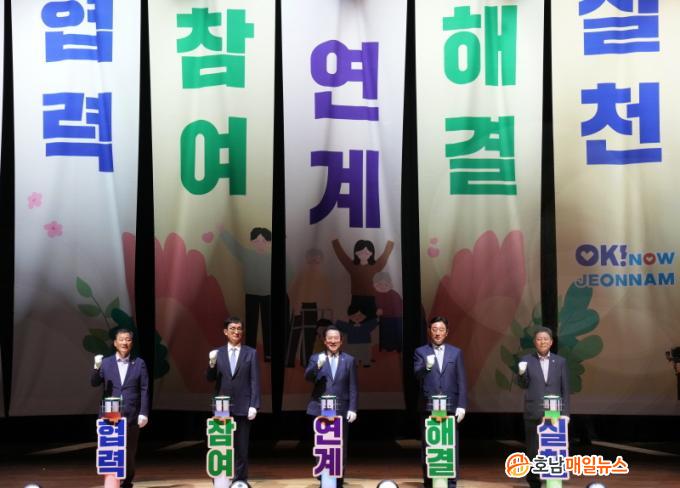 ƯÈ÷ ºñÀü¼±Æ÷½Ä ÁÖÁ¦ÀÎ ¡®¿ÀÄÉÀÌ! ³ª¿ì(OK! NOW) Àü³², º¹Áö°øµ¿Ã¼¡¯´Â ¡®»õ·Î¿î ±âȸ¸¦ Àü³²°ú ÇÔ²²ÇÏÀÚ(New Opportunity With)¡¯´Â ¹Î¼± 8±â ÈĹݱâ Àü³²µµ ºñÀü ½ÇÇöÀ» À§ÇØ »çȸº¹ÁöÁ¾»çÀÚ¿Í ¾ÕÀå¼°Ú´Ù´Â °ÇÑ ÀÇÁö¸¦ ³ªÅ¸³Â´Ù.