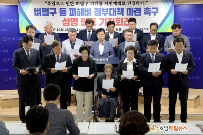 À̹ø ¼º¸íÀ» ¹ßÇ¥ÇÑ Àü³²µµÀÇȸ ±è¹®¼ö ³ó¼ö»êÀ§¿øÀå(´õºÒ¾î¹ÎÁִ硤½Å¾È1)Àº ¡°Á¤ºÎÀÇ ½â¾î ¹®µå·¯Áø ½Ò°ª ´ëÃ¥¿¡ À̾î, ÀÚ¿¬ÀçÇØ ÇÇÇØ¸¶Àú ¿Ü¸éÇÏ´Â ¹«Ã¥ÀÓÇÑ ÀÛŸ¦ ³ó¹ÎÀ» ´ë½ÅÇØ °·ÂÈ÷ ±ÔźÇÑ´Ù¡±°í ¹àÈ÷¸ç, ¡°³ó¾î¾÷ÀçÇØ´ëÃ¥¹ý¿¡¼´Â Æø¿°À» ³ó¾÷ÀçÇØ·Î ÀÎÁ¤Çϰí ÀÖÀ¸¸ç, ¡®ÀÚ¿¬Çö»óÀ» Á÷Á¢ ¿øÀÎÀ¸·Î ÇÏ´Â º´ÇØÃ桯µµ ÀçÇØ ¹üÁÖ¿¡ Æ÷ÇÔÇϰí Àִµ¥ ¿Ö ±Ý³â Æø¿°À¸·Î ¹ß»ýÇÑ º¸ê±¸ ÇÇÇØ´Â ÀçÇØ·Î ÀÎÁ¤ÇÏÁö ¾Ê´Â°¡¡±¸ç ¡°À̹ø º¸ê±¸ ÇÇÇØ¸¦ Áï½Ã ÀÚ¿¬ÀçÇØ·Î ÀÎÁ¤Çϰí ÇÇÇØÁ¶»ç¸¦ ½Å¼ÓÇÏ°Ô ½Ç½ÃÇØ¾ß ÇÑ´Ù¡±°í ¿ä±¸Çß´Ù.