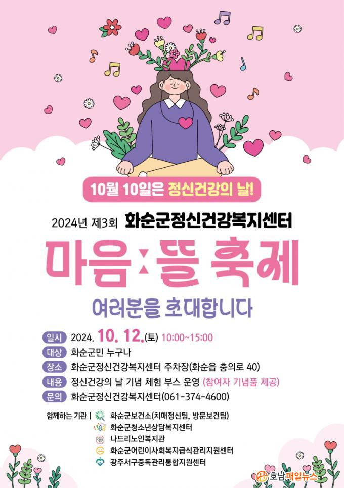 ȼø±ºÁ¤½Å°Ç°º¹Áö¼¾ÅÍ(¼¾ÅÍÀå ±è°æÈ¯)°¡ ÁÖ°üÇÏ´Â ¸¶À½¢°¶ã ÃàÁ¦´Â 12ÀÏ ¿ÀÀü 10½ÃºÎÅÍ ¿ÀÈÄ 3½Ã±îÁö ȼø±ºÁ¤½Å°Ç°º¹Áö¼¾ÅÍ ÁÖÂ÷Àå¿¡¼ ÁøÇàµÇ¸ç Áö¿ªÁֹΠ´©±¸³ª ¹«·á·Î Âü¿©ÇÒ ¼ö ÀÖ´Ù.