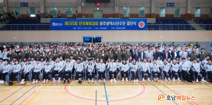 ° ½ÃÀåÀº À̳¯ ºû°íÀ»Ã¼À°°ü¿¡¼ ¿¸° Á¦105ȸ Àü±¹Ã¼À°´ëȸ ±¤Áֽà ¼±¼ö´Ü °á´Ü½Ä¿¡ Âü¼®, ¡°À̹ø Àü±¹Ã¼ÀüÀº ¼±¼ö °³Àε鿡°Ô´Â ¿µ±¤ÀÌ µÉ °ÍÀ̰í, ±¤Áֽ÷μ´Â Å« º¸¶÷ÀÌ µÉ °ÍÀÌ´Ù¡±¸ç ¡°´ÙÄ¡Áö ¸»°í ÃÖ¼±À» ´ÙÇØ ¶Ù¾î ´Þ¶ó¡±°í ÀÀ¿øÇß´Ù.