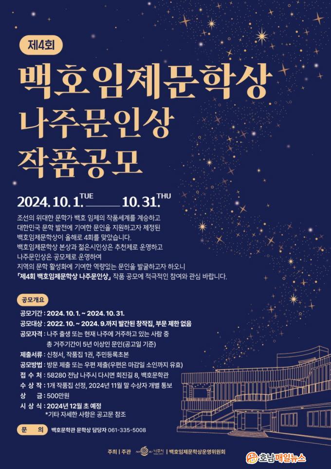 Á¦4ȸ ¹éÈ£ÀÓÁ¦¹®ÇлóÀº º»»ó, ÀþÀº½ÃÀλó, ³ªÁÖ¹®ÀÎ»ó ¼¼ ºÐ¾ß·Î ÁøÇàµÈ´Ù. º»»ó°ú ÀþÀº½ÃÀλóÀº °ø½Å·Â ÀÖ´Â ÃâÆÇ»ç¿¡¼ ÃÖ±Ù 2³â À̳» ¹ßÇàÇÑ °³ÀΠâÀÛ½ÃÁýÀ» ´ë»óÀ¸·Î ½É»çÇÑ´Ù. ½É»ç´Â 10¿ùºÎÅÍ 11¿ù±îÁö ÁøÇàµÇ¸ç º»»ó°ú ÀþÀº½ÃÀÎ»ó °¢ 1Æí¾¿ ¼±Á¤µÈ´Ù.
