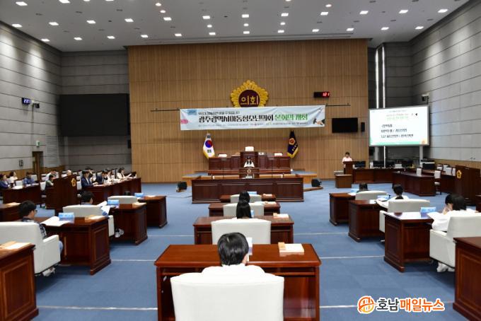 À̳¯ û¼Ò³âÀÇȸ º»È¸ÀÇ¿Í ¾Æµ¿ÀÇȸ Á¤Ã¥¼±¾ð½Ä¿¡¼ ³íÀÇµÈ ¾È°ÇÀº ±¤ÁÖ½Ã¿Í ±¤Áֽñ³À°Ã» µî °ü·Ã ºÎ¼¿¡ Àü´ÞµÅ ¾È°Ç °ËÅ並 °ÅÃÄ ¾Æµ¿¡¤Ã»¼Ò³â Á¤Ã¥¿¡ ¹Ý¿µµÉ ¿¹Á¤ÀÌ´Ù.