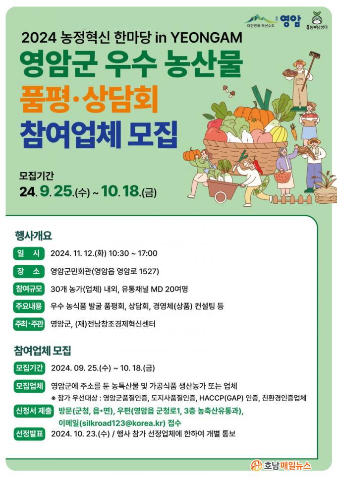 ¿µ¾Ï±º ³ó¼öÃà»ê¡¤½Äǰ »ý»ê ³ó°¡, °¡°ø½Äǰ¾÷ü°¡ Çà»ç¿¡ Âü°¡ÇÒ ¼ö ÀÖ°í, Á¢¼ö´Â À¾¡¤¸é ÇàÁ¤º¹Áö¼¾Åͳª ¿µ¾Ï±º ³óÃà»êÀ¯Åë°ú¿¡¼ ¹æ¹®¡¤¿ìÆí¡¤À̸ÞÀÏ·Î ¹Þ´Â´Ù. Âü°¡ÀÚ ¼±Á¤ °á°ú´Â 23ÀÏ¿¡ °³º° ÅëÁöÇÑ´Ù.