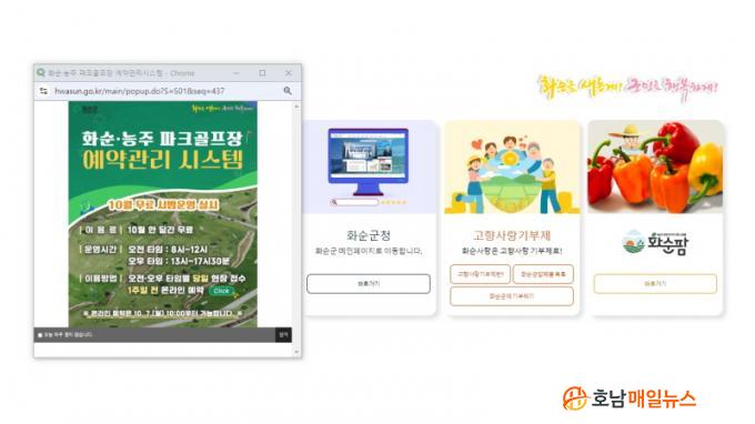 ¿¹¾à°ü¸® ½Ã½ºÅÛ ±¸Ãà¿¡ µû¶ó ȼø¡¤´ÉÁÖ ÆÄÅ©°ñÇÁÀåÀÇ ¿¹¾àÀ» ȼø±ºÃ» ȨÆäÀÌÁö ÆË¾÷â ¹× ¸ÞÀιè³Ê(https://www.hwasun.go.kr/hanium/intro.html)¸¦ ÅëÇØ ¿¹¾à¡¤Á¢¼öÇÒ ¼ö ÀÖ°Ô µÇ¾ú´Ù.