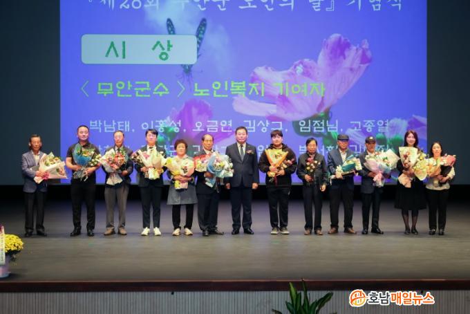 ǥâ½Ä¿¡´Â Áö¿ª »çȸ¿¡ Çå½ÅÇÑ ¸ð¹ü³ëÀÎ 21¸í°ú ³ëÀκ¹ÁöÁõÁø¿¡ ±â¿©ÇÑ 15¸íÀÇ À¯°øÀÚ¿¡°Ô Àü³²µµÁö»ç, ¹«¾È±º¼ö, ´ëÇѳëÀÎȸ Áß¾ÓȸÀå, Àü³²¿¬ÇÕȸÀå, ¹«¾È±ºÁöȸÀå ǥâÀ» ¼ö¿©Çϸç Çà»çÀÇ Àǹ̸¦ ´õÇß´Ù.