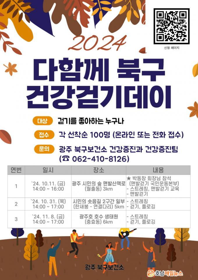 ¡®¸Ç¹ß°È±â±¹¹Î¿îµ¿º»ºÎ¡¯¿Í Çù·ÂÇØ ÃßÁøµÇ´Â À̹ø ¸Ç¹ß °È±â ´ëȸ´Â Áö¿ªÁֹΰú °ü°èÀÚ 150¿© ¸íÀÌ Âü¼®ÇÑ °¡¿îµ¥ ¿ÀÈÄ 2½ÃºÎÅÍ 4½Ã±îÁö ºÏ±¸°¡ ±¤ÁÖ ½Ã¹ÎÀÇ ½£¿¡ Á¶¼ºÇØ ³õÀº ¡®¸Ç¹ß »êÃ¥·Î 1.2§° ±¸°£¡¯À» Âü¼®ÀÚµéÀÌ ÇÔ²² ¿Õº¹À¸·Î °È´Â ÇÁ·Î±×·¥ÀÌ ¿î¿µµÉ ¿¹Á¤ÀÌ´Ù.