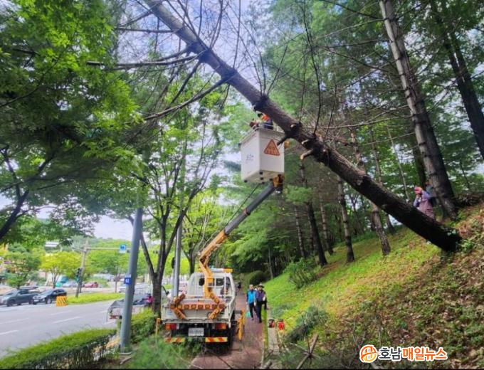 À̿ܿ¡µµ ½Ã´Â ¿¬Ç⵿, Á¶·Êµ¿ ÀÏ´ë¿¡¼ ÇÑÀü°ú Çù·ÂÇÏ¿© Àü·Â¼± ±ÙÁ¢ °¡·Î¼ö °¡ÁöÄ¡±â ÀÛ¾÷À» ÁøÇàÇß´Ù. ÀÌ´Â Àü·Â¼±°ú °¡·Î¼ö °£ÀÇ Ãæµ¹À» ¹æÁöÇϰí, 1,500¼¼´ë ÀÌ»óÀÇ Á¤Àü À§ÇèÀ» ¹Ì¸® ¿¹¹æÇϴµ¥ Áß¿äÇÑ ¿ªÇÒÀ» Çß´Ù.