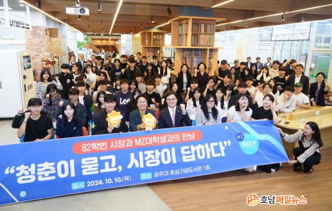 ° ½ÃÀåÀº À̳¯ ¡®Ã»ÃáÀÌ ¹¯°í ½ÃÀåÀÌ ´äÇÏ´Ù¡¯¸¦ ÁÖÁ¦·Î ´ëÇлýµé°ú ÇöÀå ¼ÒÅëÀ» ¸¶Ä£ µÚ, ±¤ÁÖ´ë Çлý½Ä´ç¿¡¼ Çлýµé°ú Á¡½ÉÀ» ÇÔ²² ÇÏ¸ç ±×µéÀÇ ²Þ°ú ¸ñÇ¥¸¦ µè°í, ±¤Áֽà û³âÁ¤Ã¥¿¡ ´ëÇØ ÀǰßÀ» ³ª´³´Ù.