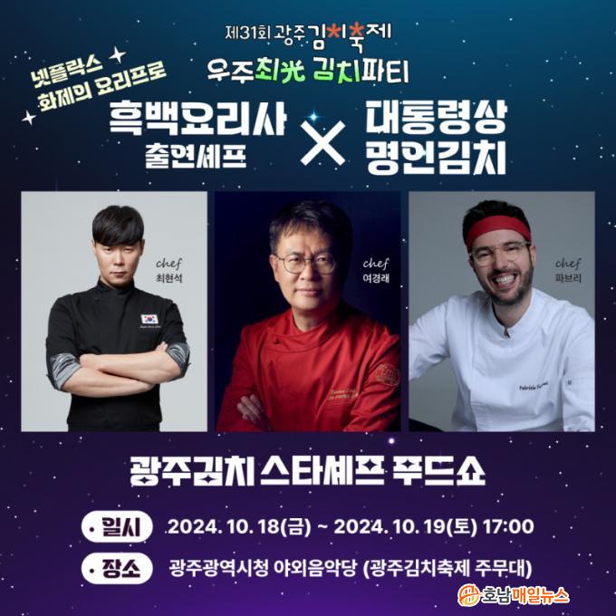 ¡®±¤ÁÖ±èÄ¡ ½ºÅ¸¼ÎÇÁ Ǫµå¼î¡¯´Â ±¤ÁÖ±èÄ¡ÃàÁ¦ ÁÖ¹«´ëÀÎ ±¤ÁÖ½Ãû ¾ß¿ÜÀ½¾Ç´ç¿¡¼ 18~19ÀÏ ÀÌÆ² °£ ¿¸°´Ù. ¹æ¼ÛÇÁ·Î±×·¥ ¡®Èæ¹é¿ä¸®»ç¡¯ Ã⿬ÁøÀÎ À¯¸í¼ÎÇÁ ÃÖÇö¼®, ¿©°æ·¡, ÆÄºê¸®Ä¡¿À Æä¶ó¸®, »çÂûÀ½½Ä ´ë°¡ÀÎ Á¤°ü½º´ÔÀÌ Âü¿©ÇÑ´Ù.