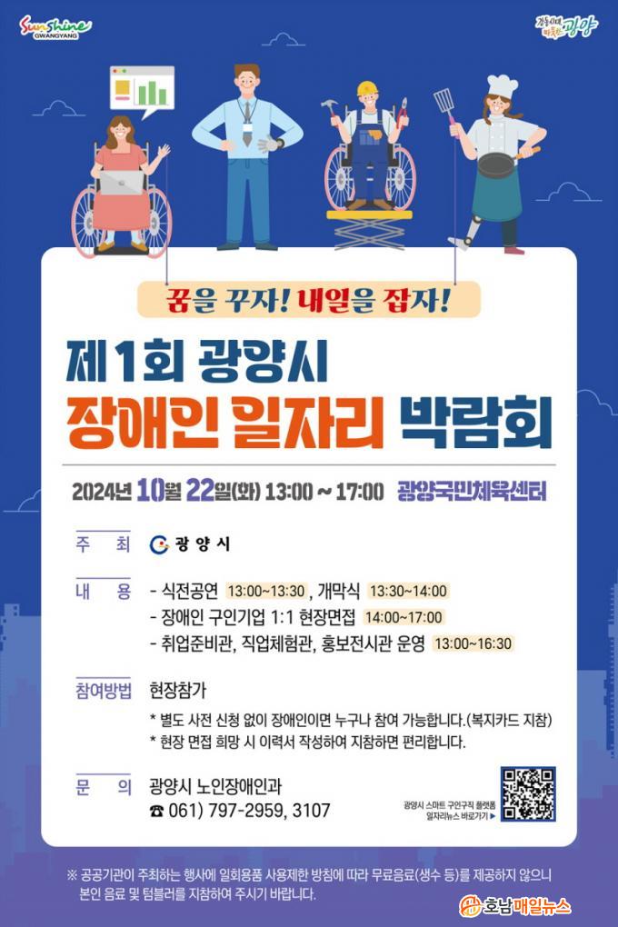 ±¤¾ç½Ã´Â ¿À´Â 22ÀÏ ±¤¾ç±¹¹ÎüÀ°¼¾ÅÍ¿¡¼ ¡°²ÞÀ» ²ÙÀÚ! ³»ÀÏÀ» ÀâÀÚ!¡±¶ó´Â ½½·Î°ÇÀ¸·Î ¡®Á¦1ȸ Àå¾ÖÀÎ ÀÏÀÚ¸® ¹Ú¶÷ȸ¡¯°¡ °³ÃÖµÈ´Ù°í ¹àÇû´Ù.