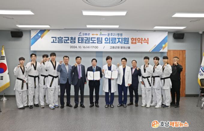 Çù¾à½ÄÀº °ø¿µ¹Î ±º¼ö¿Í ÀÌÀ±È£ ¿øÀåÀÇ Àλ縻À» ½ÃÀÛÀ¸·Î Çù¾à¼ ¼¸í°ú ±â³ä ÃÔ¿µ ¼øÀ¸·Î ÁøÇàµÆ´Ù. Çù¾à ³»¿ë¿¡´Â À±È£21º´¿øÀ» °íÈﱺû űǵµÆÀ Àü´ã ÀÇ·á±â°üÀ¸·Î ÁöÁ¤Çϰí, À±È£21º´¿øÀÌ ¼±¼ö´ÜÀÇ Áø·áºñ °¨¸é ¹× ÇÒÀÎ µî ÀÇ·áÁö¿øÀ» Á¦°øÇÑ´Ù´Â ³»¿ëÀÌ ´ã°å´Ù.