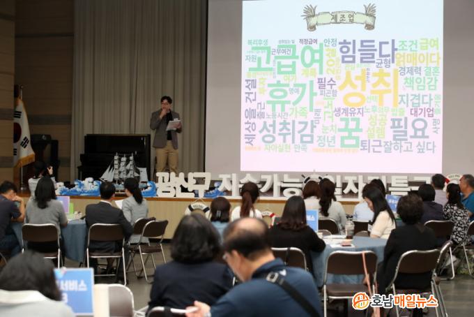 ±¤»ê±¸´Â 19ÀÏ ±¤»ê±¸Ã» 7Ãþ À±»ó¿øÈ¦¿¡¼ ½Ã¹Î 100¿© ¸íÀ¸·Î ±¸¼ºµÈ Áö¼Ó°¡´É ÀÏÀÚ¸® ÀÇÁ¦¹ß±¼´Ü, Áö¼Ó°¡´É ÀÏÀÚ¸® »çȸÀû ´ëÈ ÃßÁø´Ü°ú ÇÔ²² Áö¼Ó°¡´É ÀÏÀÚ¸® ÀÇÁ¦ ¹ß±¼À» À§ÇÑ ¼¼ ¹øÂ° »çȸÀû ´ëȸ¦ À̾´Ù°í ¹àÇû´Ù.