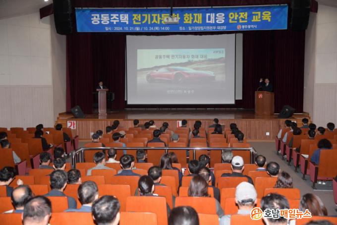 ÁöÇÏ¿¡ Àü±âÂ÷ ÃæÀü¼³ºñ°¡ ¼³Ä¡µÈ 458°³ °øµ¿ÁÖÅà °ü¸®¼ÒÀå ¹× ¾ÈÀü°ü¸®ÀÚ, ½Ã¡¤±¸ °ü·ÃºÎ¼ °ø¹«¿øÀ» ´ë»óÀ¸·Î ÇÑ À̹ø ±³À°¿¡´Â ÃÖ¾çÁÖ ±¤Áּҹ溻ºÎ ±³¼ö°¡ ¡ãÀü±âÀÚµ¿Â÷ ÈÀç Æ¯¼º ¡ãÈÀç ¿¹¹æ¹ý ¡ãÈÀç ¹ß»ý ¶§ ¼Ò¹æ½Ã¼³À» Ȱ¿ëÇÑ ¾ÈÀüÇÑ ´ëÀÀ¹æ¹ý ¡ãÀÔÁÖ¹ÎÀÇ Çdz Çൿ ¿ä·É µîÀ» ±³À°Çß´Ù.