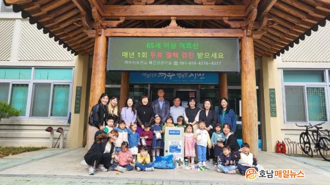 À̹ø Ȱµ¿Àº ¿©¼ö½Ã ¹Î°£¾î¸°ÀÌÁý ¿¬ÇÕȸÀÇ Áö±¸ °Ç° Áö۱â ÇÁ·ÎÁ§Æ® ¡®Áö±¸¾ß ¿ì¸®°¡ º¯ÇÒ°Ô¡¯ÀÇ ÀÏȯÀ¸·Î, 23°³ ¹Î°£¾î¸°ÀÌÁý ¿ø¾Æ 1,020¸íÀÇ Âü¿©·Î Áö³ 9¿ùºÎÅÍ °¢ °¡Á¤ÀÇ ÆóÀǾàǰ 10kgÀ» ¸ð¾Æ Àü´ÞÇß´Ù.