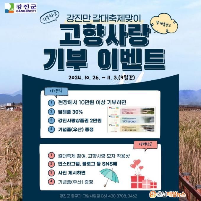 °íÇâ»ç¶û±âºÎÁ¦ À̺¥Æ®´Â Çà»çÀå ³» ºÎ½º¿¡¼ ÁøÇàµÇ¸ç, ±âÁ¸ 3¸¸ ¿ø »ó´çÀÇ ´ä·Êǰ¿¡ ´õÇØ °Áø»ç¶û»óǰ±Ç 2¸¸ ¿ø°ú ¿ì»ê µî Ãß°¡ ±â³äǰÀ» ÁõÁ¤ÇÏ´Â ÇöÀå ±âºÎ À̺¥Æ®¿Í SNS ÀÎÁõ À̺¥Æ® µî Âü¿©ÀÚ¿¡°Ô dz¼ºÇÑ ÇýÅÃÀÌ Á¦°øµÉ ¿¹Á¤ÀÌ´Ù.