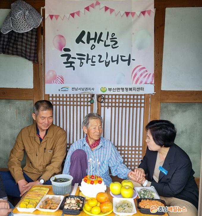 Àå¼ö ¾î¸£½Å »ý½Å»ó Â÷·Áµå¸®±â »ç¾÷Àº K-water Àü³²¼³²±ÇÁö»ç(Áö»çÀå ±èÀçÇÐ)ÀÇ ÈÄ¿øÀ¸·Î ÃßÁøµÇ¸ç, ºÎ»ê¸é¿¡ ½ÇÁ¦ °ÅÁÖÇÏ´Â 90¼¼ ÀÌ»ó ¾î¸£½ÅÀ» ´ë»óÀ¸·Î »ýÀÏ¿¡ Á÷Á¢ ã¾Æ°¡ ¹Ì¿ª±¹, Àü, ¹ÝÂù, Á¦Ã¶ °úÀϰú ÄÉÀÌÅ©·Î »ý½Å»óÀ» Â÷·Áµå¸®°í ¾ÈºÎ¸¦ »ìÇÇ´Â »ç¾÷ÀÌ´Ù.
