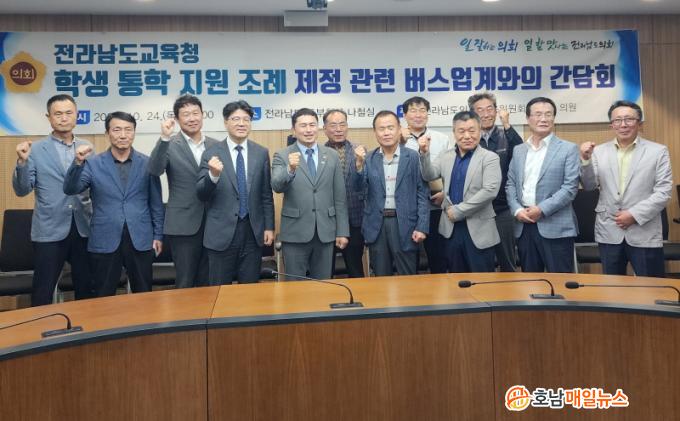 ÀÓÇü¼® ÀÇ¿øÀº ¡°¡®Àü¶ó³²µµ±³À°Ã» Çлý ÅëÇÐ Áö¿ø Á¶·Ê¾È¡¯Àº ¡®ÃʤýÁߵÀ°¹ý¡¯¿¡ µû¶ó ³ó¾îÃÌÇб³ Çлý¿¡ ´ëÇÑ ÅëÇÐ Áö¿øÀ» ½Ã Áö¿ªÀÇ ¿ø°Å¸® °ÅÁÖ Çлý±îÁö·Î È®´ëÇϱâ À§ÇÑ ±Ù°Å¸¦ ¸¶·ÃÇÏ·Á´Â °Í¡±À̶ó¸ç ¡°½Ã³»¹ö½º ¾÷°è¿¡ ¹ÌÄ¥ ¿µÇâÀ» °í·ÁÇØ ÅëÇÐ Áö¿ø ¹æÇâÀ» ÇùÀÇÇϱâ À§ÇØ °£´ãȸ¸¦ ¸¶·ÃÇÏ°Ô µÆ´Ù¡±°í ¸»Çß´Ù.