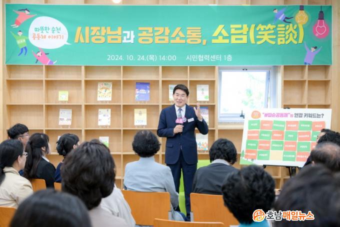 ³ë°ü±Ô ¼øÃµ½ÃÀåÀº ¡°°øµ¿Ã¼¾ß¸»·Î ¸¶À»ÀÇ ¹®Á¦¿Í °¥µîÀ» Á¶À²Çϰí Áö¿ªÀ» °Ç°ÇÏ°Ô À̲ø¾î°¡´Â Èû¡±À̶ó¸ç, ¡°¾ÕÀ¸·Îµµ °øµ¿Ã¼ÀÇ ¼ºÀå°ú ¹®È È®»êÀ» À§ÇÑ Àû±ØÀûÀÎ Áö¿øÀ¸·Î ÇູÇÑ Á¤ÁÖµµ½Ã¸¦ ¸¸µé¾î °¡°Ú´Ù¡±°í ¸»Çß´Ù.