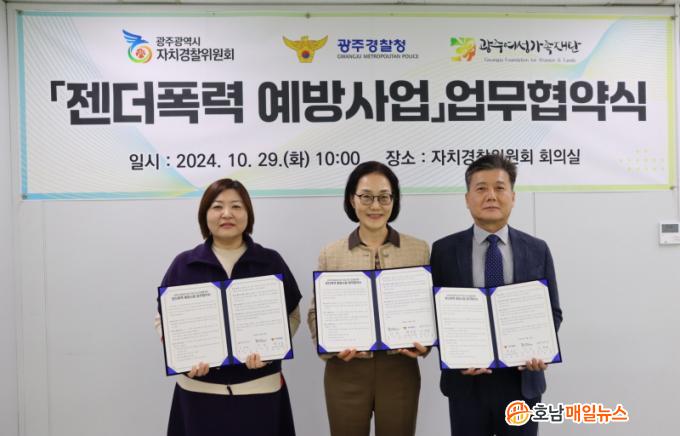 À̳¯ Çù¾à½Ä¿¡´Â ¾ÈÁø ±¤ÁÖÀÚÄ¡°æÂûÀ§¿øÀå, ¹ÚÁ¾»ï ±¤ÁÖ°æÂûû ¿©¼ºÃ»¼Ò³â°úÀå, ±è°æ·Ê ±¤ÁÖ¿©¼º°¡Á·Àç´Ü ´ëÇ¥ÀÌ»ç µîÀÌ Âü¼®ÇßÀ¸¸ç, À̵éÀº Á¨´õÆø·Â ¿¹¹æ°ú ÇÇÇØ Áö¿ø¿¡ ÈûÀ» ¸ðÀ¸±â·Î Çß´Ù.