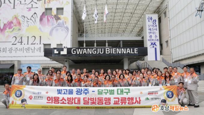 À̳¯ Çà»ç´Â ±¤ÁÖ¸¦ ¹æ¹®ÇÑ ´ë±¸ ÀÇ¿ë¼Ò¹æ´ë¿ø 30¸í°ú ±¤ÁÖ ÀÇ¿ë¼Ò¹æ´ë¿ø 40¸íÀÌ Âü¼®ÇØ ±¤ÁÖºñ¿£³¯·¹¸¦ °ü¶÷Çϰí, ¿ª»ç °øµ¿Ã¼ Á¤½ÅÀ» ÁöÄѿ ¾ç¸²µ¿À» ¹æ¹®ÇØ ÀÏ»óÀÇ »î ¼Ó¿¡ ÆîÃÄÁö´Â ¹®È¿¹¼úÀ» üÇèÇß´Ù.