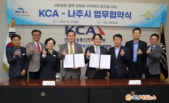 Çù¾à½Ä¿¡´Â À±º´Å ³ªÁÖ½ÃÀå°ú ÀÌ»óÈÆ KCA ¿øÀåÀ» ºñ·ÔÇØ °ü°èÀÚ 8¸íÀÌ Âü¼®ÇÏ¿© Çù·ÂÀÇ Àǹ̸¦ ´õÇß´Ù. ¾ç ±â°üÀº Çù¾àÀ» ¹ÙÅÁÀ¸·Î Á¤º¸ °øÀ¯, °øµ¿ ÇÁ·ÎÁ§Æ® ÃßÁø, ¸ÂÃãÇü º¹Áö ÇÁ·Î±×·¥ °³¹ß µîÀ» ÅëÇØ ½ÇÁúÀûÀÎ Áö¿ª»çȸ º¹Áö Çâ»ó¿¡ ±â¿©ÇÏ°í »ó»ý ¸ðµ¨ ±¸Ãà¿¡ Èû¾µ °èȹÀÌ´Ù.