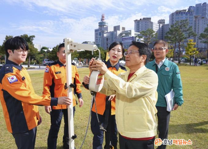 °±âÁ¤ ±¤ÁÖ½ÃÀåÀº ¡°¹Î¹æÀ§ ÈÆ·ÃÀº ºñ»ó »óȲ¿¡¼ ½Ã¹ÎÀÇ »ý¸í°ú Àç»êÀ» º¸È£Çϱâ À§ÇÑ ±âº»Àû ÈÆ·ÃÀÌ´Ù¡±¸ç ¡°Àç³»óȲ ½Ã ½Å¼ÓÇÏ°Ô ´ëóÇÒ ¼ö ÀÖµµ·Ï »ó½Ã ºñ»ó´ëºñü°è¸¦ °®Ãß´Â µî ¾ðÁ¦ ¾îµð¼³ª ¾È½Éµµ½Ã ±¤ÁÖ¸¦ ¸¸µé±â À§ÇØ ³ë·ÂÇϰڴ١±°í ¹àÇû´Ù.