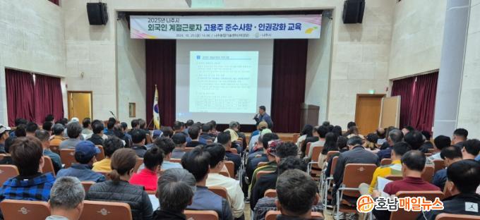 À±º´Å ³ªÁÖ½ÃÀåÀº ¡°À̹ø ±³À°À» ÅëÇØ ¿Ü±¹ÀÎ ±Ù·ÎÀÚ¿Í °í¿ë ³ó°¡°¡ »óÈ£ ÀÌÇØ¿Í ½Å·Ú¸¦ ¹ÙÅÁÀ¸·Î ¾ÈÁ¤ÀûÀÌ°í »ý»êÀûÀÎ ³ó¾÷ ȯ°æÀ» Á¶¼ºÇϱ⸦ ±â´ëÇÑ´Ù¡±¸ç, ¡°¿Ü±¹ÀÎ °èÀý±Ù·ÎÀÚ ÇÁ·Î±×·¥ÀÌ ³óÃÌÀÇ Àη³ ÇØ¼Ò»Ó¸¸ ¾Æ´Ï¶ó ³ó¾÷ÀÇ Áö¼Ó °¡´É¼ºÀ» ³ôÀÌ´Â Áß¿äÇÑ Á¤Ã¥À¸·Î ÀÚ¸®¸Å±èÇϵµ·Ï ÃÖ¼±À» ´ÙÇÒ °Í¡±À̶ó°í °Á¶Çß´Ù.