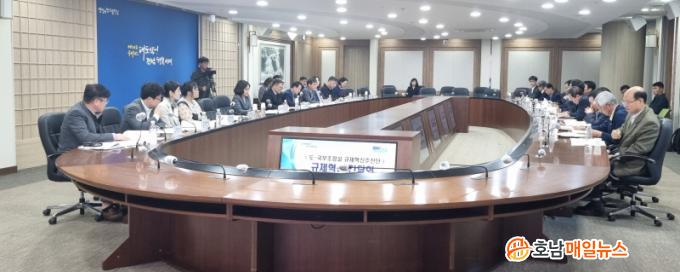 5ÀÏ µµÃ»¿¡¼ ¿¸° °£´ãȸ¿¡¼± Àü³²µµÀÇ ±ÔÁ¦ ¼Ò°ü ºÎ¼ÀåÀÇ ±ÔÁ¦ °³¼± ¾È°Ç ¹ßÇ¥ ¹× °ÇÀÇ, ±¹¹«Á¶Á¤½Ç¿¡¼ Âü¼®ÇÑ Àü¹®À§¿øµéÀÇ ÁúÀÇ ÀÀ´ä ¼ø¼·Î ÁøÇàµÆ´Ù.