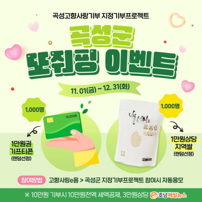À̹ø À̺¥Æ®´Â 10¸¸ ¿ø ÀÌ»ó ±âºÎÀÚ¿¡ ´ëÇØ ¸Å´Þ 500¸í ¹«ÀÛÀ§ ÃßÃ·ÇØ 1¸¸¿ø ±Ç ±âÇÁƼÄܰú 1¸¸ ¿ø »ó´ç Áö¿ª½ÒÀ» Áö±ÞÇÑ´Ù. À̺¥Æ® Âü¿© ¹æ¹ýÀº °íÇâ»ç¶ûeÀ½ ¶Ç´Â Àü±¹³óÇù¿¡¼ °î¼º±º °íÇâ»ç¶û±âºÎ ÈÄ ÀÚµ¿ ÀÀ¸ðµÇ¸ç, ´ç÷Àڵ鿡°Ô´Â °³º° ¾È³»ÇÒ ¿¹Á¤ÀÌ´Ù.