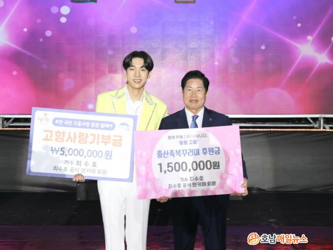 ±º¿¡ µû¸£¸é, °¡¼ö ÃÖ¼öÈ£´Â Áö³ 7ÀÏ ¡®Á¦4ȸ °íÈïÀ¯ÀÚÃàÁ¦¡¯°ø¿¬À» À§ÇØ ¹æ¹®ÇÑ ÀÚ¸®¿¡¼ ÆÒÄ«Æä ¼ö¹æ»ç¿Í ÇÔ²² °íÈïÀÇ º¯È¿Í ¹ßÀüÀ» ÀÀ¿øÇÏ´Â ¸¶À½À¸·Î °íÇâ»ç¶û±âºÎ¿¡ µ¿ÂüÇß´Ù.
