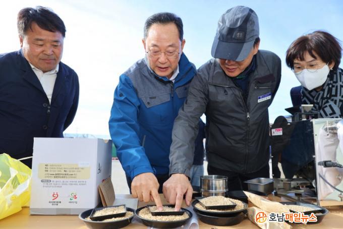 ¼ö¸ÅÇöÀå Á¡°Ë¿¡ ³ª¼± ¸íÇö°ü ±º¼ö´Â¡°Æø¿°°ú ÁýÁßÈ£·Î ÀÎÇÑ º´ÇØÃæÀÇ ¹ß»ý µîÀ¸·Î ¾î·Á¿òÀÌ °¡ÁßµÈ »óȲÀÓ¿¡µµ ³ó¹ÎµéÀ» Æ÷ÇÔÇÑ ¹Î°üÀÌ ÇÔ²² Àß Çù·ÂÇØ ³ó¾÷ÀçÇØ ÀÎÁ¤°ú Ưº°Àç³Áö¿ª ÁöÁ¤ µîÀ» À̲ø¾î ³Â´Ù¡±¸ç¡°¾î·Á¿ò ¼Ó¿¡¼µµ °ªÁø ¼öÈ®ÀÇ °á½ÇÀ» ¸ÎÀº ³ó¾÷ÀεéÀÇ ³ë°í¿¡ °¨»çµå¸®¸ç, º ¼ö¸Å°¡ ¿øÈ°È÷ ÀÌ·ïÁú ¼ö ÀÖµµ·Ï ÃÖ¼±À» ´ÙÇϰڴ١±°í ¸»Çß´Ù.