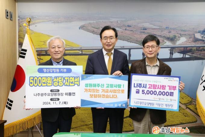 À±º´Å ³ªÁÖ½ÃÀåÀº ¡°À̵¿¾ð ¿øÀå´ÔÀÇ ²ÙÁØÇÑ ±âºÎ´Â Áö¿ª»çȸÀÇ Å« ÀڻꡱÀ̶ó¸ç ¡°³ªÁÖ±¤ÁÖ¿ä¾çº´¿ø Á÷¿øµéµµ ¼Ò¾× ±âºÎ¿¡ µ¿ÂüÇØ ´õ Å« ³ª´®ÀÇ ¹°°áÀ» À̲ø¾îÁÖ±æ ¹Ù¶õ´Ù¡±°í °¨»çÀÇ ¶æÀ» ÀüÇß´Ù.