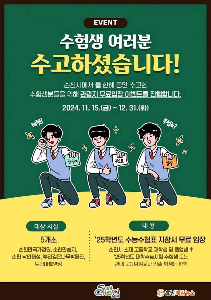 ¹«·á·Î °³¹æµÇ´Â °ü±¤Áö´Â ¼øÃµ¸¸±¹°¡Á¤¿ø, ¼øÃµ¸¸½ÀÁö, ¼øÃµ ³«¾ÈÀ¾¼º, »Ñ¸®±íÀº³ª¹«¹Ú¹°°ü, µå¶ó¸¶ÃÔ¿µÀåÀ¸·Î ¼øÃµÀ» ´ëÇ¥ÇÏ´Â 5°³ ¸í¼Ò´Ù. ÀÌµé °ü±¤Áö´Â ´Ù¾çÇÑ ÀÚ¿¬°ú ¹®ÈÀû Ư»öÀ» Áö´Ñ Àå¼Ò·Î, ¼öÇè»ýµéÀÌ Àϻ󿡼 ¹þ¾î³ª »õ·Î¿î °æÇèÀ» ½×À» ¼ö ÀÖ´Â ±âȸ¸¦ Á¦°øÇÑ´Ù.