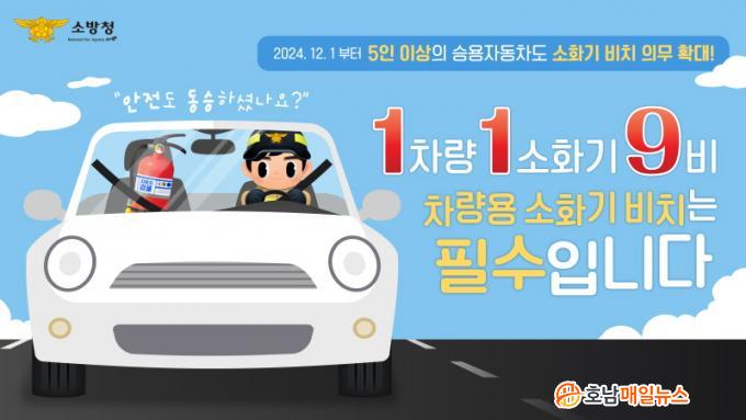 ÇöÀç Â÷·®¿ë ¼ÒȱâÀÇ ¼³Ä¡ ¹× ºñÄ¡ Àǹ«´ë»óÀº 7Àν ÀÌ»óÀ¸·Î ±ÔÁ¤Çϰí ÀÕÁö¸¸ ¿À´Â 12¿ù 1ÀϺÎÅÍ´Â 5Àν ÀÌ»ó Â÷·®¿¡ Àǹ«ºñÄ¡°¡ È®´ëµÈ´Ù.