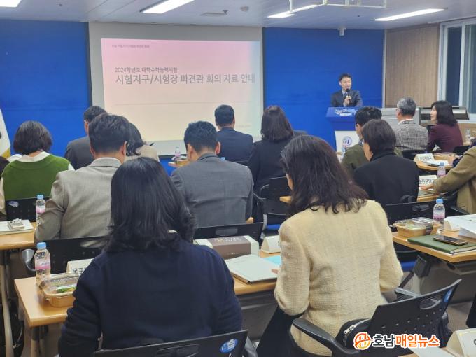 Àü³²±³À°Ã»Àº À̳¯ û»ç ÁßȸÀǽǿ¡¼ ¡®2025Çг⵵ ´ëÇмöÇдɷ½ÃÇè Áö±¸‧½ÃÇèÀå ÆÄ°ß°ü ȸÀÇ¡¯¸¦ ¿°í, ½ÃÇèÀå Áغñ »óȲ°ú ¼ö¼Û ´ëÃ¥ µîÀ» Á¡°ËÇß´Ù.