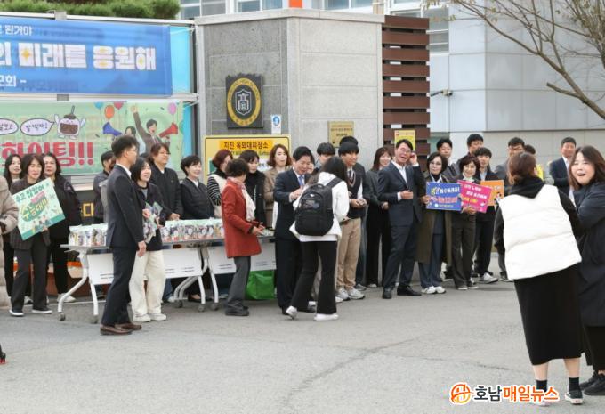 À̳¯ °ø¿µ¹Î ±º¼ö¸¦ ºñ·ÔÇÑ °ü°è °ø¹«¿øÀº À̸¥ ¾ÆÄ§ºÎÅÍ ½ÃÇèÀåÀÎ °íÈï°íµîÇб³ ±³¹®¿¡¼ ¡®¼ö´É ´ë¹Ú¡¯, ¡®ÇÕ°Ý ±â¿ø¡¯ µîÀÇ ¿¶í ±¸È£¸¦ ¿ÜÄ¡¸ç ¼öÇè»ýµéÀ» ȯȣ·Î ¸ÂÀÌÇß´Ù.