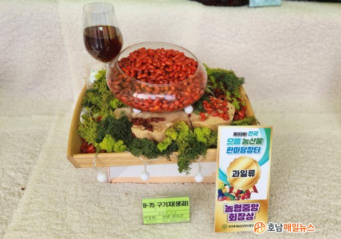 Áøµµ±º¿¡¼´Â Çѱ¹Èİè³ó¾÷°æ¿µÀÎ Áøµµ±º¿¬ÇÕȸ ¹ÚÀϼö Á÷Àü ȸÀåÀÌ ÁøµµÀÇ ´ëÇ¥ ³ó»ê¹°ÀÎ ±¸±âÀÚ¸¦ ÃâÇ°ÇØ ³óÇùÁß¾ÓȸÀå»óÀ» ¹Þ°í, ¼ÒºñÀÚ¿¡°Ô Áøµµ ³ó»ê¹°ÀÇ ¿ì¼ö¼ºÀ» ¾Ë·È´Ù.