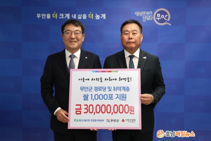 ÃÖÇå±Ô ÇѺû¿øÀڷº»ºÎÀåÀº ¡°¹«¾È±º°ú ÇÔ²² ÇùÀÇÇÏ¿© ±âºÎÇÑ ½ÒÀÌ ¹«¾È±º ³» µî·Ï °æ·Î´ç°ú Ãë¾à°èÃþ¿¡ Àß Àü´ÞµÇ±æ ¹Ù¶õ´Ù¡±¸ç ¡°Áö¿ªÀ» ´ëÇ¥ÇÏ´Â ±â¾÷À¸·Î¼ Áö¿ª»çȸ °øÀÍ ÁõÁøÀ» À§ÇØ ¾ÕÀ¸·Îµµ ÃÖ¼±À» ´ÙÇϰڴ١±°í ¼Ò°¨À» ÀüÇß´Ù.