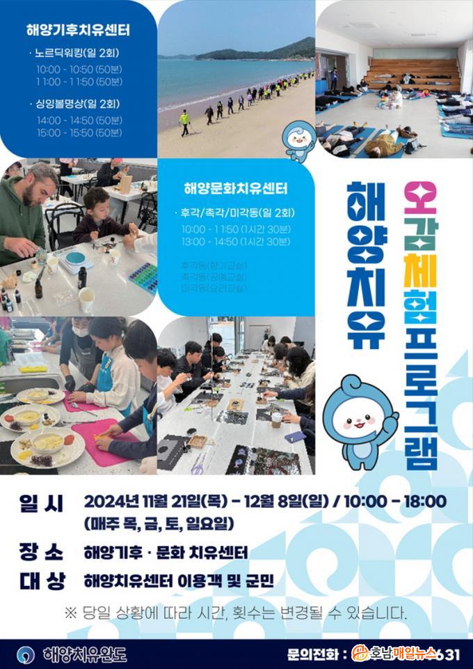 ÇÁ·Î±×·¥Àº ÇØ¾çÄ¡À¯¼¾ÅÍ À̿밴, Áö¿ª¹Î ´©±¸³ª Âü¿©ÇÒ ¼ö ÀÖÀ¸¸ç, ÀÌ¿ë ¿ä±ÝÀº ±âÈÄÄ¡À¯ ¼ÒÀÎ 6,000¿ø, ´ëÀÎ 10,000¿ø, ¹®ÈÄ¡À¯´Â ¼ÒÀΡ¤´ëÀÎ 20,000¿øÀÌ´Ù. Âü¿© ¹æ¹ýÀº ¸ÅÁÖ ¸ñ, ±Ý, Åä¿äÀÏ¿¡ ¿ÏµµÇؾçÄ¡À¯°ü¸®°ø´Ü(¢Ï061-550-7631)À¸·Î »çÀü ¿¹¾àÇÏ¸é µÈ´Ù.
