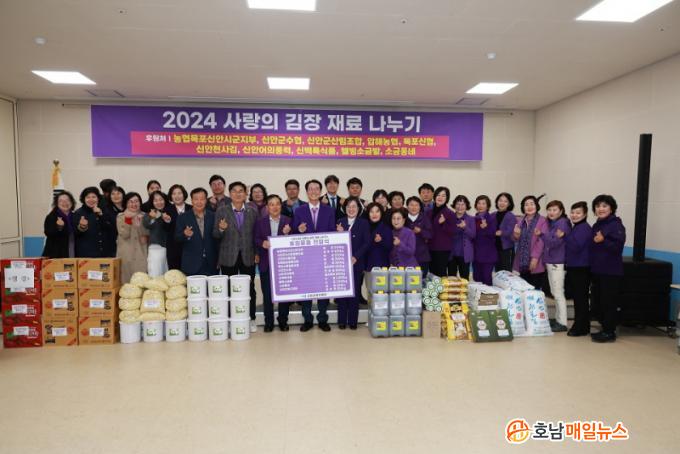 À̳¯ Àü´Þ½Ä¿¡´Â ³óÇù¸ñÆ÷½Å¾È½Ã±ºÁöºÎ, ½Å¾È±º¼öÇù, ½Å¾È±º»ê¸²Á¶ÇÕ, ¸ñÆ÷½ÅÇù, ¾ÐÇØ³óÇù, ½Å¾Èõ»ç±è, ½Å¹é·Ï½Äǰ, ¾îÀÇdz·Â¹ßÀü, ½ÅÀǸé À£ºù¼Ò±Ý¹ç, ½ÅÀÇ¸é ¼Ò±Ýµ¿³× µî 11°³ ±â°ü¿¡¼ 3,500¸¸ ¿ø »ó´çÀÇ »õ¿ìÁ£ µî ±èÀåÀç·á 7Á¾À» ÈÄ¿øÇÏ¿© ½Å¾È±º¿©¼º´ÜüÇùÀÇȸ¿Í »çȸº¹Áö½Ã¼³¿¡ Àü´ÞÇß´Ù.
