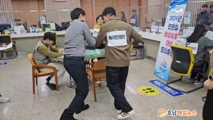 À̹ø ÈÆ·ÃÀº ÇàÁ¤¾ÈÀüºÎ ¹Î¿øÀÎÀÇ À§¹ýÇàÀ§ ´ëÀÀ ¹æ¾È Áöħ¿¡ µû¶ó ¡ã¹Î¿øÀÎ Æø¾ð¡¤ÆøÇà ¹ß»ý ¡ã¹Î¿øÀÎ ÁøÁ¤ ¹× °æ°í ¡ã»ó±ÞÀÚÀÇ Áö¿ø ¡ã»çÀü °íÁö ÈÄ ÈÞ´ë¿ë º¸È£Àåºñ ³ìÈ¡¤³ìÀ½ ¡ãºñ»óº§ È£Ãâ ¹× ¹Î¿øÀÎ Á¦Áö ¡ãÇÇÇØ °ø¹«¿ø °Ý¸®¿Í ¹æ¹® ¹Î¿øÀÎ ´ëÇÇ ¡ãƯÀÌ ¹Î¿øÀÎ Á¦¾Ð ¹× °æÂû ÀÎ°è ¼øÀ¸·Î ÁøÇàµÇ¾ú´Ù.