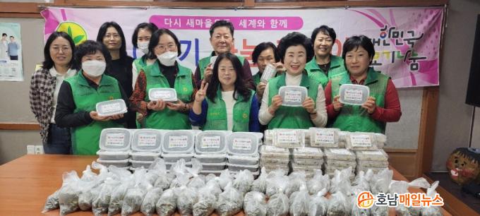 À̳¯ Çà»ç¿¡´Â Çе¿ »õ¸¶À»ºÎ³àȸ ȸ¿ø 10¿© ¸íÀÌ Âü¿©ÇØ Âû¹ä°ú °ß°ú·ù ¸êÄ¡ººÀ½ ¹ÝÂùÀ» ¸¸µé¾î ³¢´Ï¸¦ °Å¸£±â ½¬¿î µ¶°Å°¡±¸¿¡°Ô Àü´ÞÇÏ¸ç °Ç°°ú ¾ÈºÎ¸¦ È®ÀÎÇß´Ù.