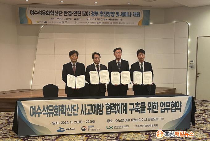 À̳¯ Çù¾à½Ä¿¡ ÃÖÁ¤±â ¿©¼ö½Ã ºÎ½ÃÀå°ú À±ÁØÇå ÈÇй°Áú¾ÈÀü¿ø »ç°í¿¹¹æ½É»ç1°úÀå, ¼Û¹Îö Çѱ¹±¹ÅäÁ¤º¸°ø»ç °ø°£Á¤º¸»ç¾÷óÀå, ¿À¿µÃ¶ ¿©¼ö»ê´Ü°øÀåÀåÇùÀÇȸÀåÀÌ Âü¼®ÇØ »çÀü ¼¸íÇÑ Çù¾à¼¸¦ »óÈ£ ±³È¯Çß´Ù.