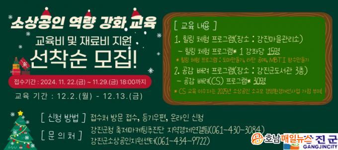 ±³À° ½ÅûÀº ¿À´Â 29ÀϱîÁöÀÌ¸ç ¼±Âø¼øÀ¸·Î Á¢¼öÇÑ´Ù. Âü¿©¸¦ ¿øÇÏ´Â ¼Ò»ó°øÀÎÀº »ç¾÷ÀÚµî·ÏÁõ, ¿¹ºñâ¾÷ÀÚ´Â Áֹεî·Ïµîº» µîÀÇ ¼·ù¸¦ ÁغñÇØ °Áø±º ÃàÁ¦¸¶ÄÉÆÃÃßÁø´Ü(°ÁøÀ¾ ŽÁø·Î 111, 4Ãþ) ¶Ç´Â °Áø±º¼Ò»ó°øÀÎÁö¿ø¼¾ÅÍ(°ÁøÀ¾ ½ÃÀ屿 19, 2Ãþ)¿¡ ¹æ¹® ¶Ç´Â ¿ìÆí, ¿Â¶óÀΠȨÆäÀÌÁö Áß ÆíÇÑ ¹æ¹ýÀ¸·Î ½ÅûÇÏ¸é µÈ´Ù.
