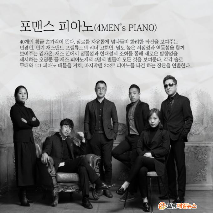 2ȸÂ÷ °ø¿¬ÀÇ ÁÖÀΰøÀÎ Æ÷¸Ç½º ÇǾƳë(4Men¡¯s Piano)´Â ±¹³» ÃÖÁ¤»ó±Þ ÇǾƴϽºÆ® 4ÀÎÀ¸·Î ±¸¼ºµÈ¡®´©±¸µµ Èä³» ³¾ ¼ö ¾ø´Â °Ç¹Ý À§ Ȳ±Ý ¼Õ°¡¶ô¡¯À̶ó°í ºÒ¸®´Â ÀçÁî ÇÇ¾Æ³ë ±×·ìÀ¸·Î, À̹ø °ø¿¬¿¡¼ ¸â¹ö °£ È·ÁÇÑ ÇÇ¾Æ³ë ¹èÆ²·Î ¡®Spain¡¯, ¡®Shape of My Heart¡¯, ¡®The Girl from Ipanema¡¯ µîÀÇ ¸í°îÀ» ÇÇ¾Æ³ë ¾Ó»óºí·Î ÀçÇØ¼®ÇÒ ¿¹Á¤ÀÌ´Ù.