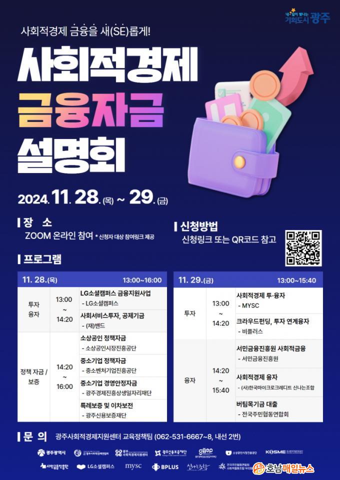 ±¤ÁÖ»çȸÀû°æÁ¦Áö¿ø¼¾ÅÍ ÁÖ°üÇÏ´Â À̹ø ¼³¸íȸ´Â (¿¹ºñ)»çȸÀû±â¾÷, (»çȸÀû)Çùµ¿Á¶ÇÕ, ¸¶À»±â¾÷, ÀÚȰ±â¾÷ µî »çȸÀû°æÁ¦±â¾÷À» ´ë»óÀ¸·Î Çϸç, LG¼Ò¼ÈÄ·ÆÛ½º, (Àç)¹êµå, ¼Ò»ó°øÀνÃÀåÁøÈï°ø´Ü, Áß¼Òº¥Ã³±â¾÷ÁøÈï°ø´Ü µî 11°³ ±ÝÀ¶±â°üÀÌ Âü¿©ÇÑ´Ù.
