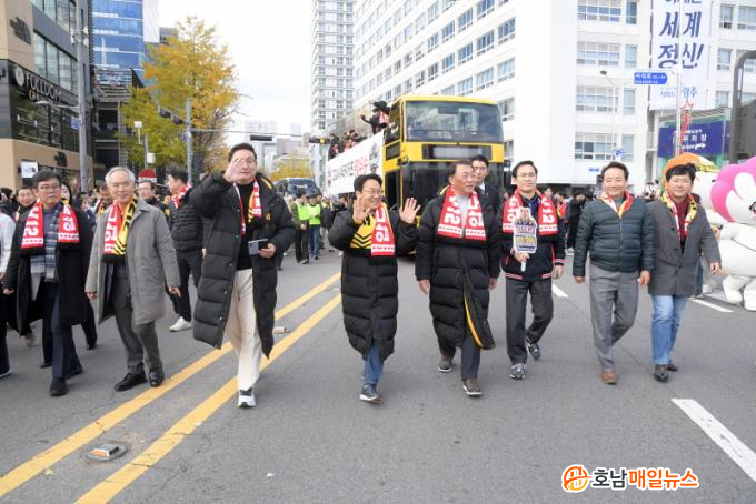 ¡®±¤ÁÖÀÇ Èû¡¯À» º¸¿©ÁØ ¼±¼öµéÀ» ÃàÇÏÇϱâ À§ÇØ °±âÁ¤ ±¤ÁÖ½ÃÀåÀ» ºñ·ÔÇØ ¾Èµµ°É¡¤¾çºÎ³²¡¤ÀüÁø¼÷ ±¹È¸ÀÇ¿ø, Á¶¼®È£¡¤¸íÁø¡¤Ã¤ÀºÁö¡¤È«±â¿ù ±¤ÁÖ½ÃÀÇ¿ø, ÀÓÅà µ¿±¸Ã»Àå, ³ªÈÆ ±¤Áֽþ߱¸ÇùȸÀå, ±¤ÁÖÃæÀåÁß°ú ÇаÃÊ ¾ß±¸´Ü, E.T¾ß±¸´Ü, ½Ã¹Î µî ¾à 1¸¸¿©¸íÀÌ ÇÔ²² Çß´Ù.