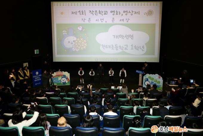 Áö³ 11¿ù 29~30ÀÏ CGV¸ñÆ÷Æòȱ¤ÀåÁ¡¿¡¼ ¿¸° ¡®Á¦1ȸ Àü¶ó³²µµ±³À°Ã» ÀÛÀºÇб³ ¿µÈ‧¿µ»óÁ¦¡¯ Âü¿© ÇлýµéÀº ÀÌó·³ ¼Ò°¨À» ¹àÇû´Ù. ¡®ÀÛÀº ½Ã¼±, Å« ¼¼»ó¡¯À» ÁÖÁ¦·Î ÇÑ À̹ø Çà»ç¿¡´Â 700¿© ¸íÀÇ ±³À°°¡Á·µéÀÌ Âü¿©ÇØ, ÀÛÀºÇб³ ¸Å·ÂÀ» ´ãÀº 19°³ ÀÛǰÀ» °¨»óÇÏ°í ±³·ùÀÇ ½Ã°£À» °¡Á³´Ù.