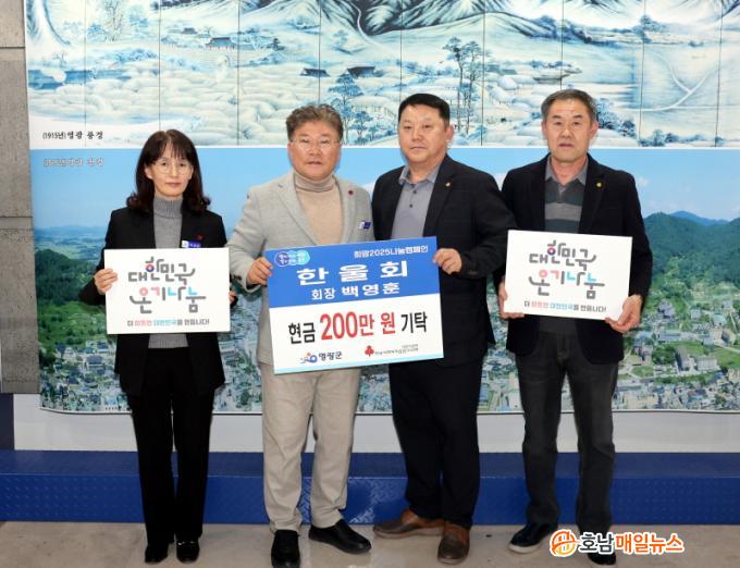 ÇÑ¿ïȸ´Â ¿µ±¤±º¿¡ °ÅÁÖÇÏ´Â 1965³â»ý ¶Ç·¡ ¸ðÀÓÀ¸·Î ¹é¿µÈÆ È¸ÀåÀ» ºñ·ÔÇÑ 59¸íÀÇ È¸¿øÀÌ È°µ¿Çϰí ÀÖÀ¸¸ç °íÇâ ¿µ±¤ÀÇ ¹ßÀüÀ» À§ÇØ ³ë·ÂÇÏ´Â ¸ðÀÓÀ¸·Î 2023³â 150¸¸ ¿øÀ» ±âŹÇѵ¥ ÀÌ¾î ¿ÃÇØµµ ¾î·Á¿î ÀÌ¿ôÀ» À§ÇØ ¼º±ÝÀ» ±âŹÇÏ¿© Áö¿ª»ç¶ûÀ» ½ÇõÇϰí ÀÖ´Ù.